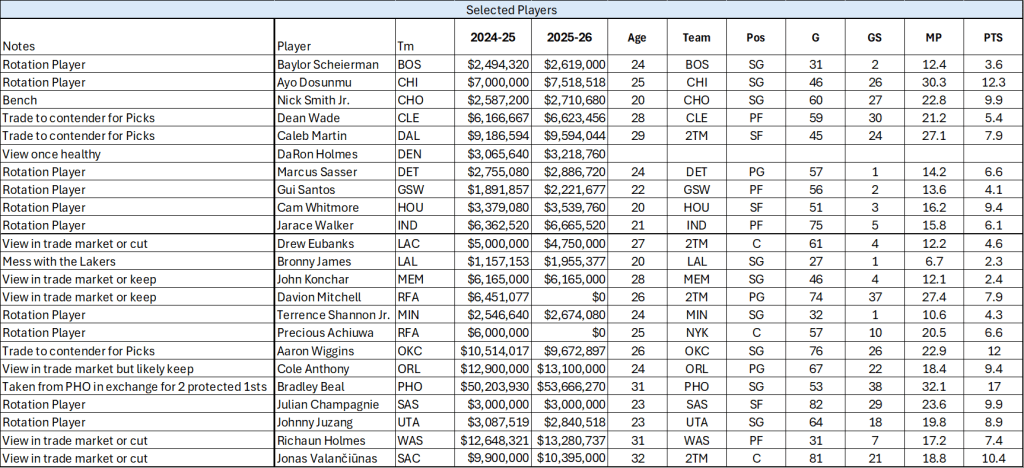 Another interesting case involves the Phoenix Suns, who may be willing to part with one or two of the protected first-round picks they received at last year’s trade deadline in exchange for shedding Bradley Beal’s contract. While the NBA might ultimately implement rules around protecting players with no-trade clauses, I’ve chosen not to apply such restrictions here, purely for the sake of this exercise.